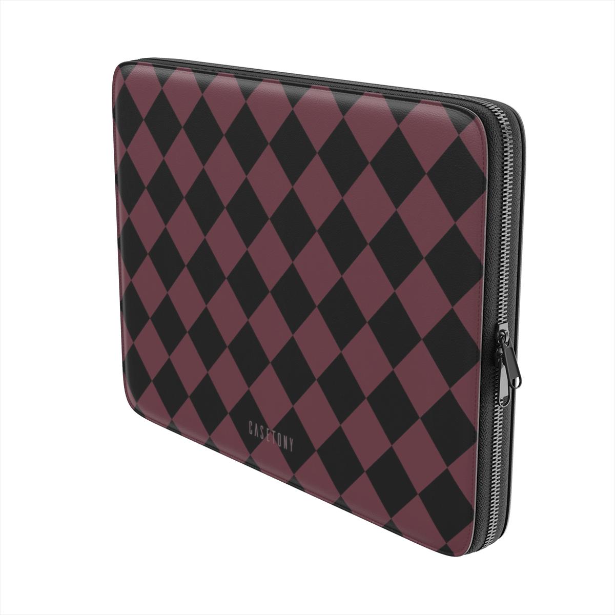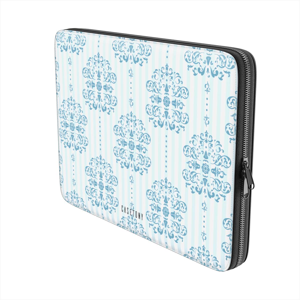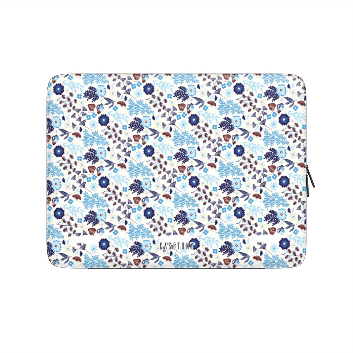 Person holding a phone case with checkered pattern and three other phone cases with different designs on a blue background.